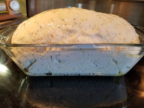 After the dough has risen to approximately double in size, form your loaf by kneading a few times then roll the dough up like a newspaper and pinch closed the seam.