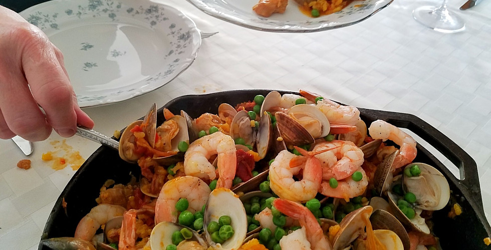 Most recently we were invited to the Corey's house for a gorgeous Spanish paella feast and I wanted to share it with you because it was delicious and absolutely beautiful! Melanie Corey truly deserves a hand for this meal and also her husband Mark, of course, because he is such a warm and entertaining host. Both of them share an extensive knowledge of exceptional food!